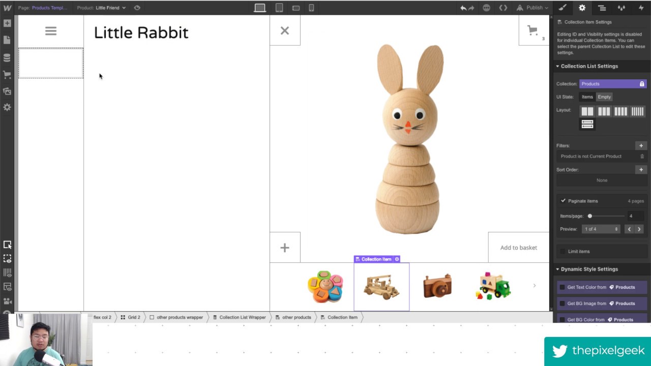 However, I don’t think it can be setup to take in a Collection List of E-Commerce products atm just individual images created manually. Anyone know how to make that example happen while using the auto product collection list?