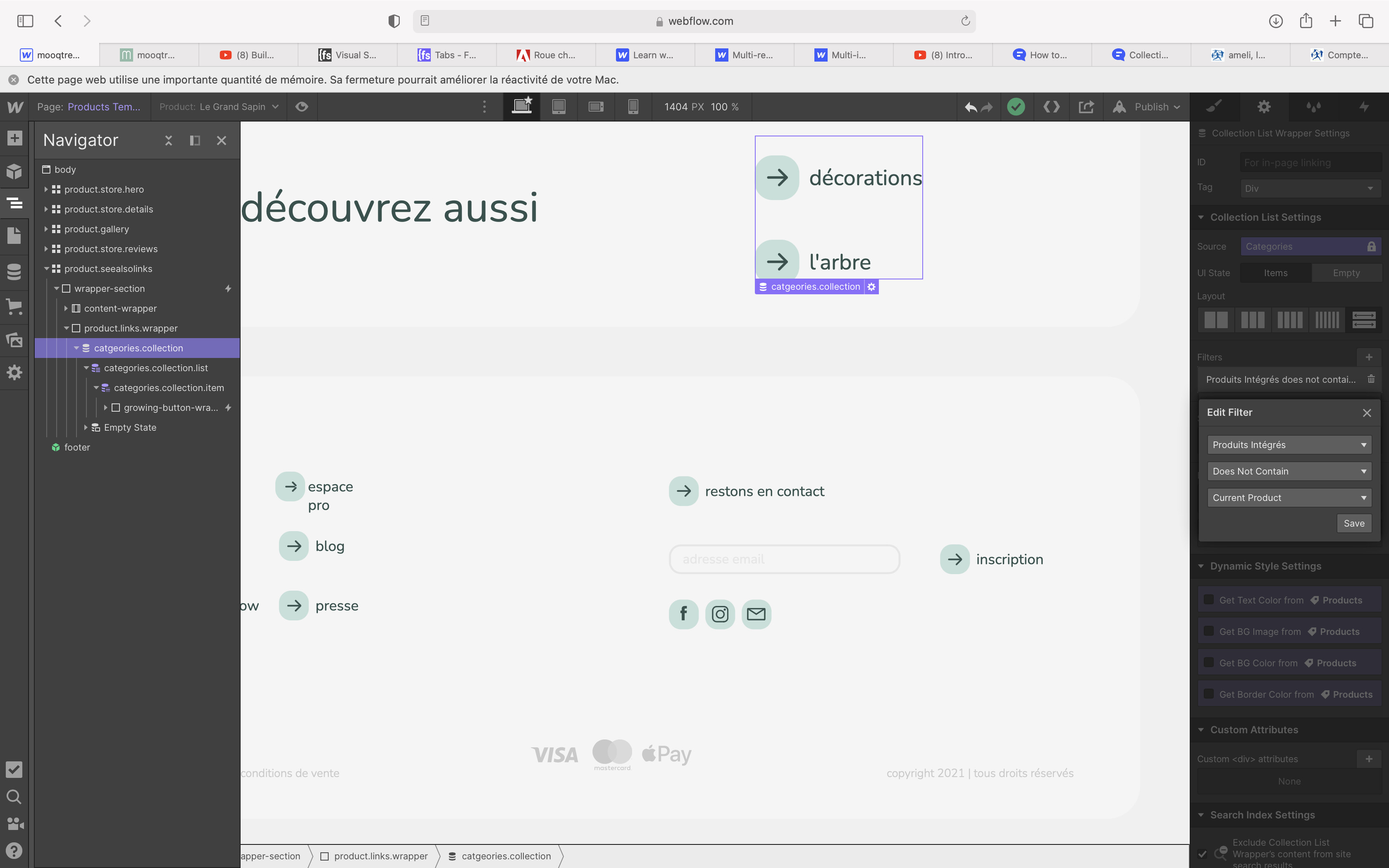 Then for the second navigation, you get the idea. I had to create a custom field for the product page link but no need to create a collection custom field since Webflow, this time, gave me access to it.