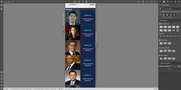 Hey @vincent, thank you very much. I’ve now changed it to float left so it’s correct for the first, third, and fifth columns. However, the photos are not offset for the second, fourth, and sixth columns. They’re overlapping with the text blocks instead of being to the right of it.