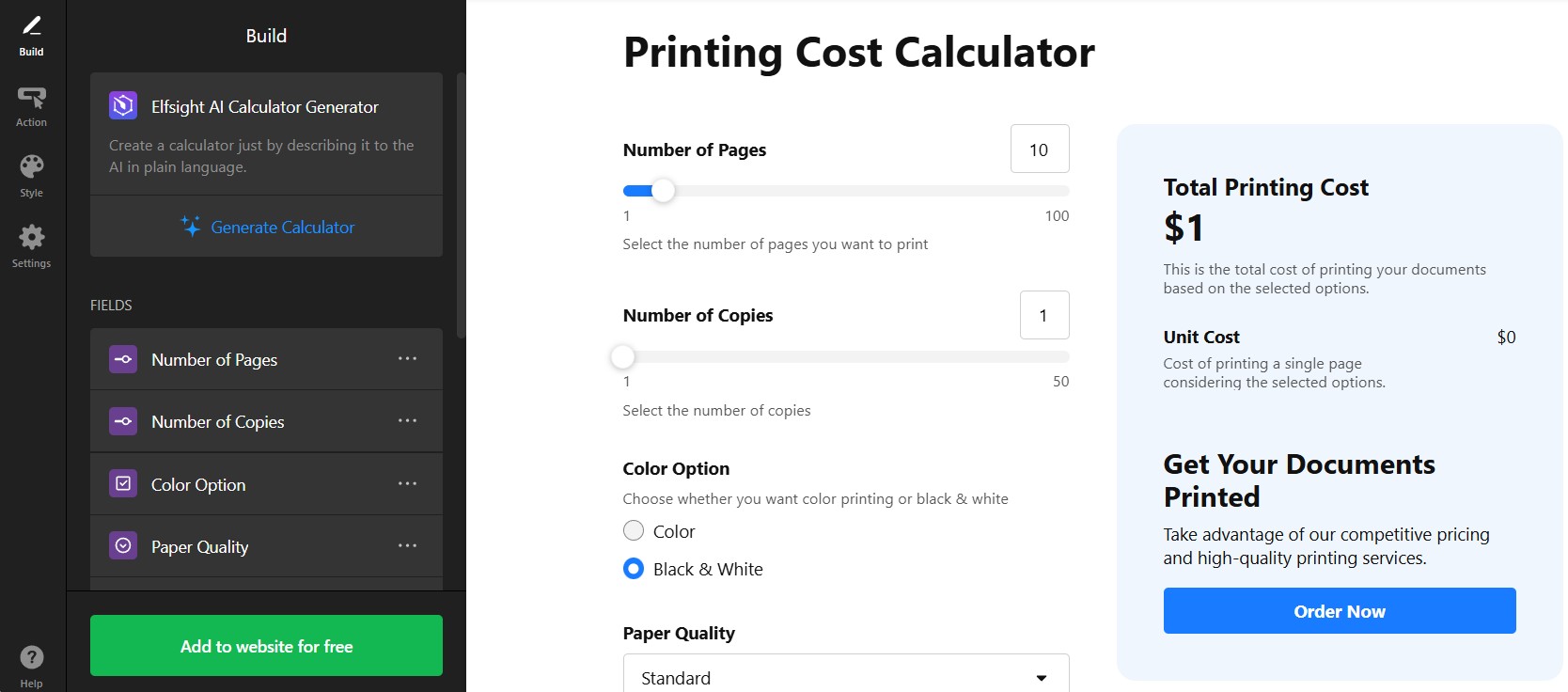 With it you can create interactive calculators but not just basic ones. They let you collect orders process payments, your clients can choose from various options and you create them yourself. It does not require any coding skills and is easy to embed to your website.