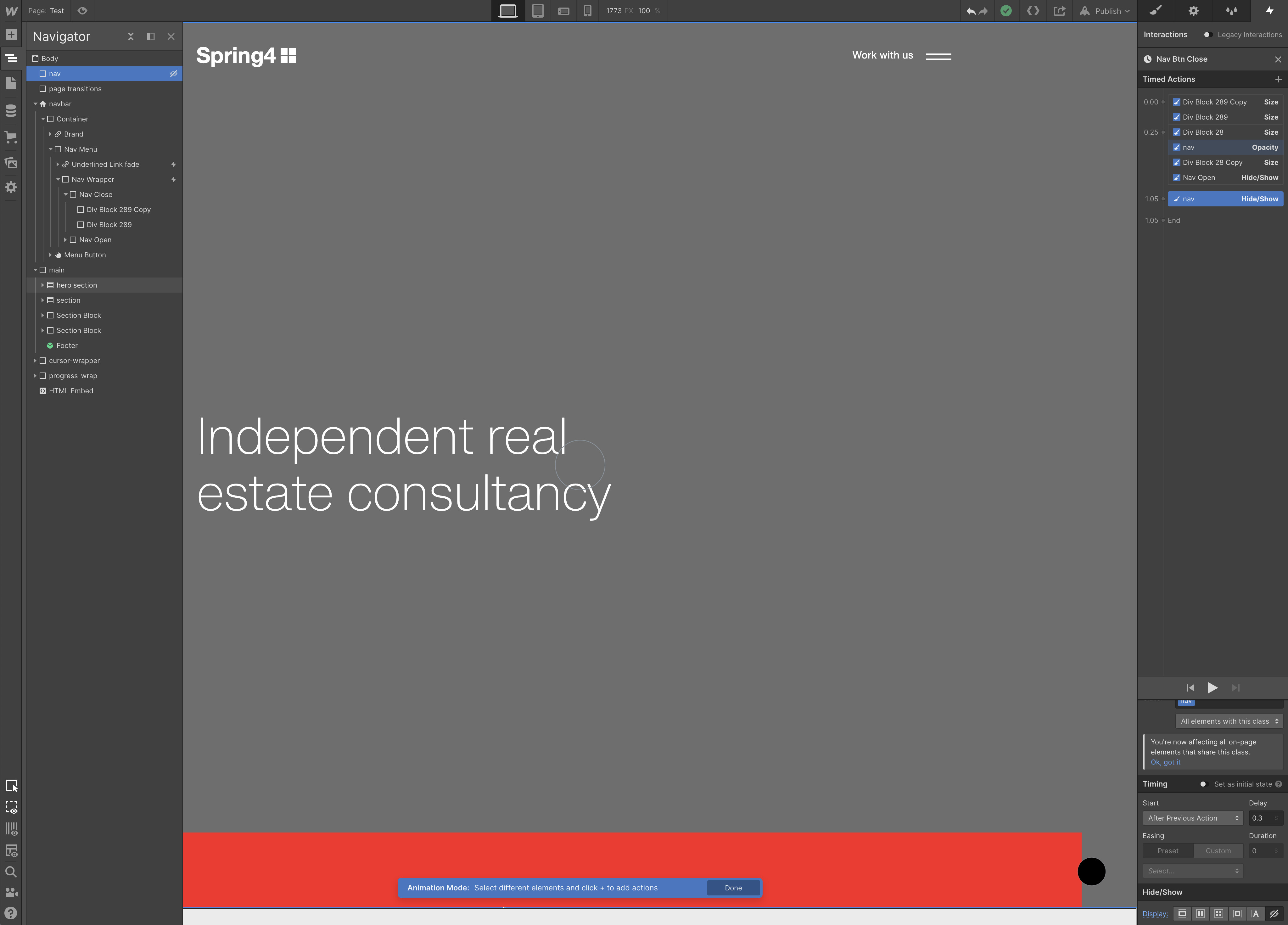 Thanks for taking the time to reply… I have copied you sequence I believe… but im still struggling with a the close of the nav div and also being able to action the the nav item again when re-clicking… this is my first real time trying to create with interactions so excuse my lack of knowhow