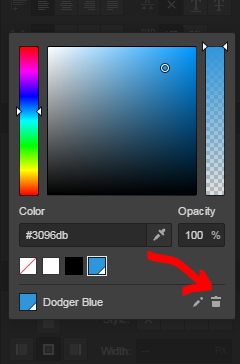 To delete the swatch, just press the bin icon: