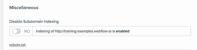 Hi @aerismel, thanks for the question! You can disable indexing of your webflow.io sub-domain by disabling the indexing on the SEO tab of site settings: