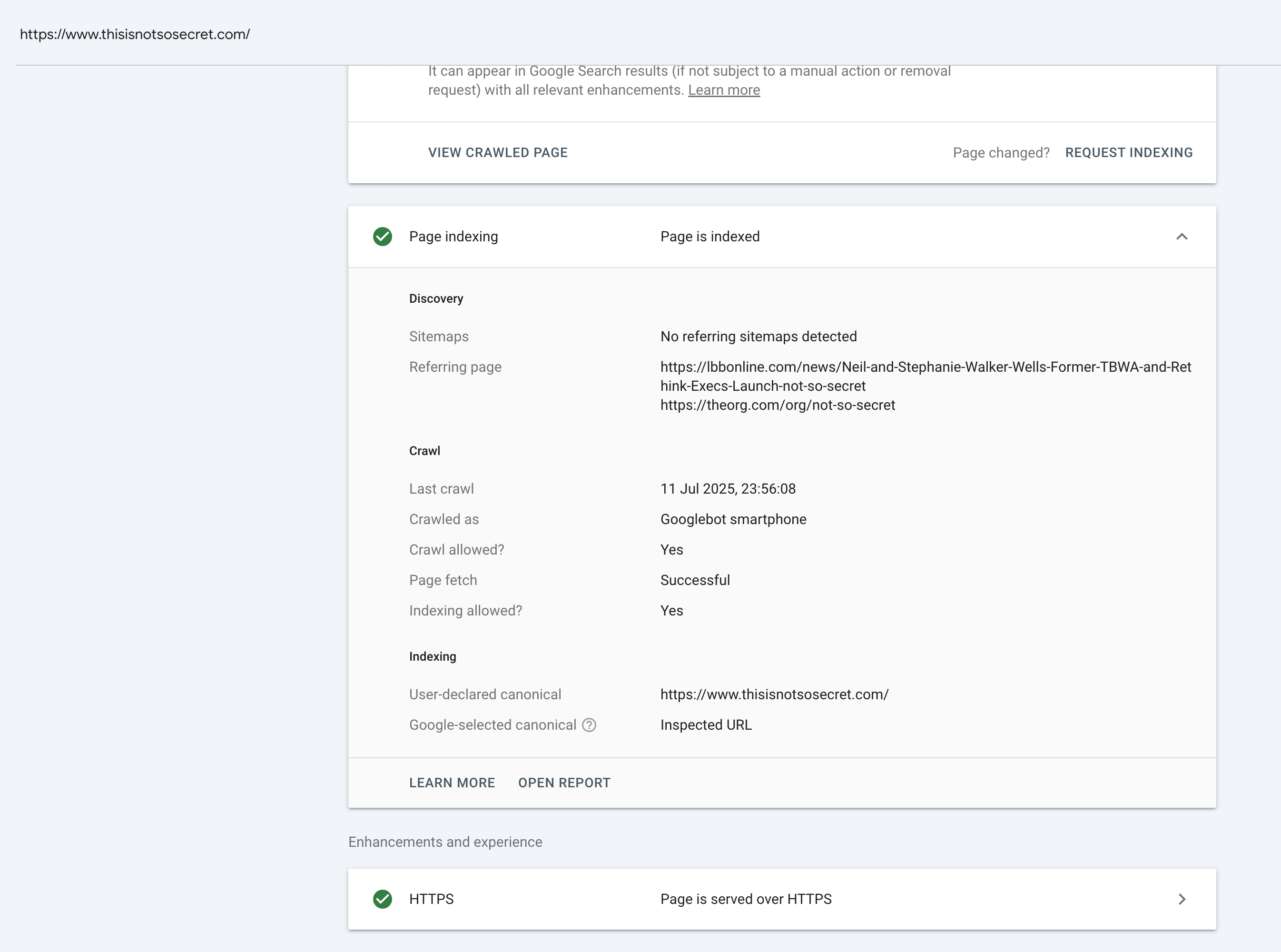 It only appear with site:thisisnotsosecret.com