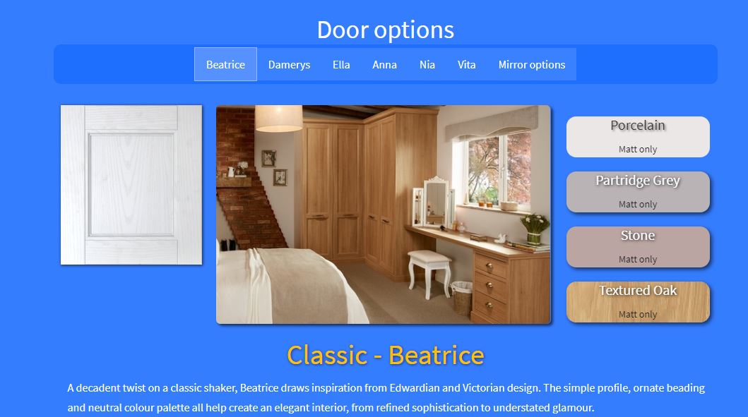 Also a capture of the door image (on left) to be changed by clicking on the colours on the right.