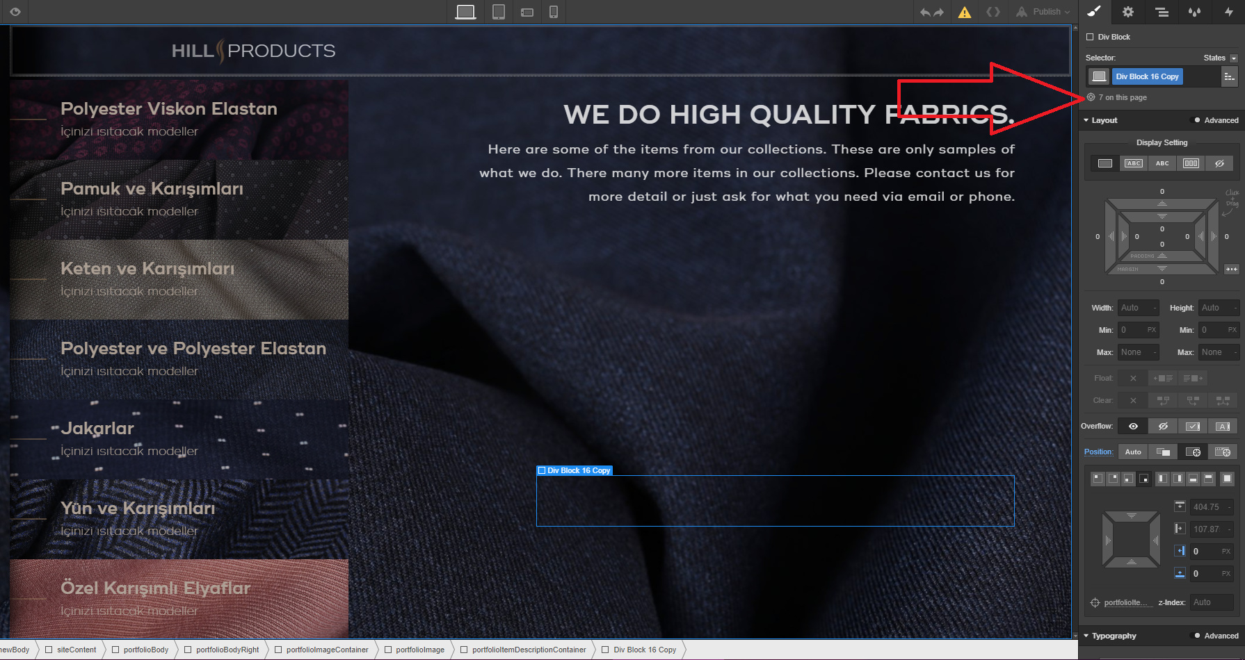 I have added a lightbox gallery link (without a thumbnail image) with text only on the 7th product (called Özel Karışım Elyaflar),but while I’m hovering over other products the link for the lightbox is still there to click even if it’s not seen