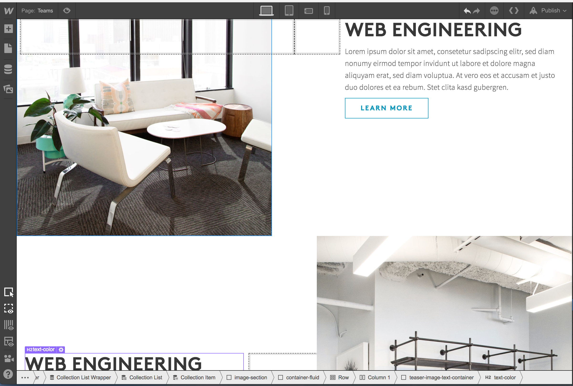This should be a simple ask… I literally don’t see a way for me to iterate over a Collection List with two staggering elements. Is this not possible? If so, what am I supposed to do to get my data into the Webflow Website? How am I supposed to build a typical page like this that iterates with a simple staggered design?