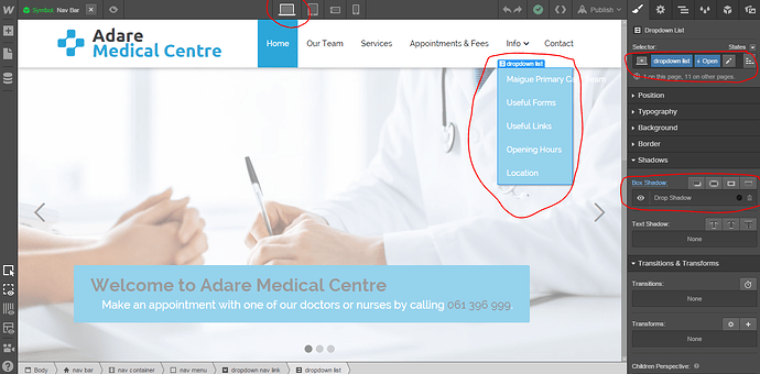 Also, I noticed that the desktop shadow settings for a dropdown list don’t show up in the tablet and mobile versions - meaning you can’t edit them/remove them. I hope you understand what I’m saying - if you don’t I can explain further.