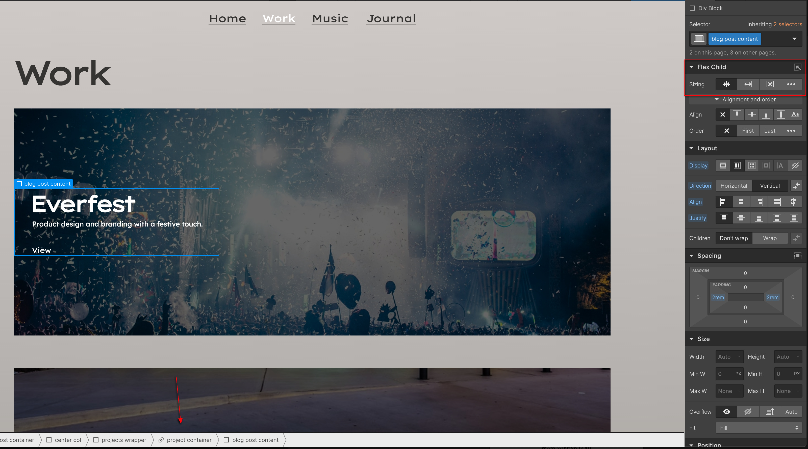 What’s happening is that your blog post content div is a flex child of other elements therefor it “inherits” style from its parent element.