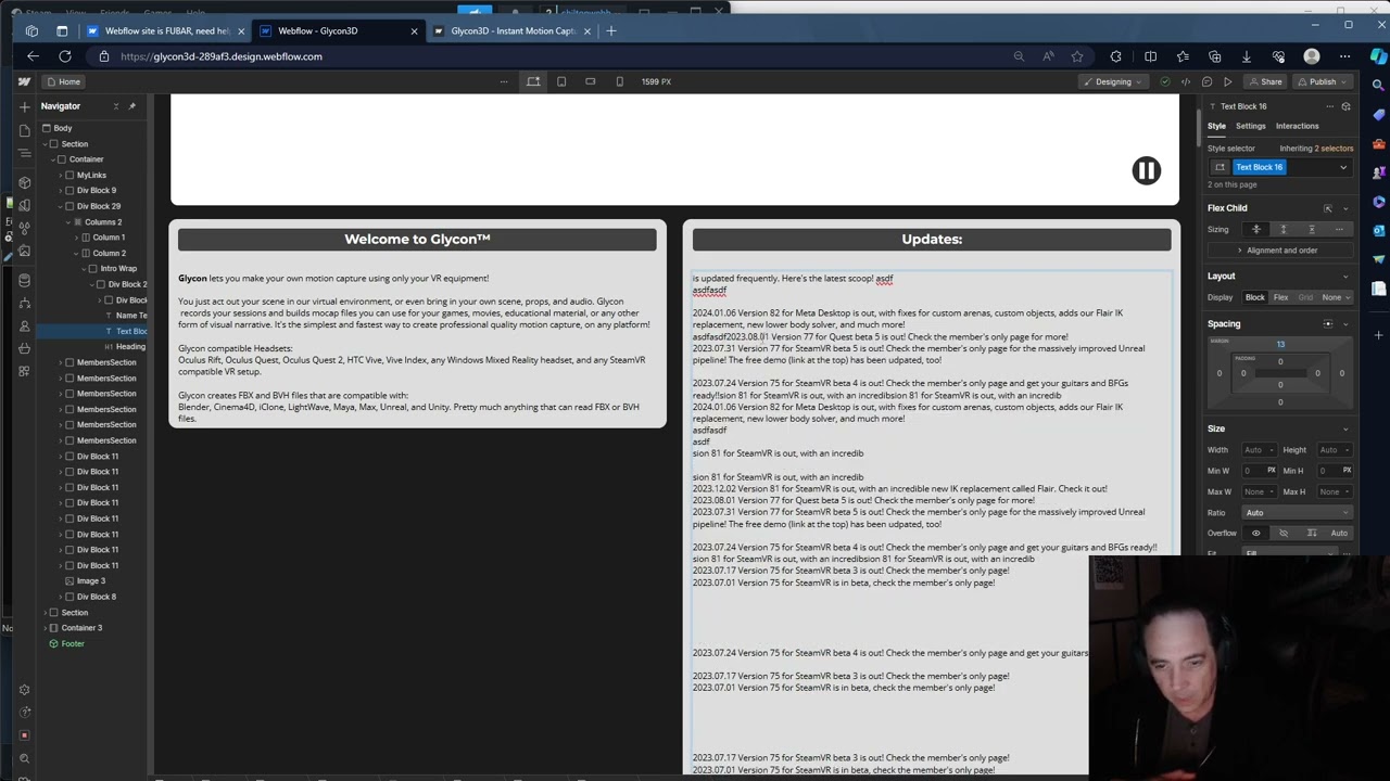 BTW I was able to solve the main bug in this case, with regard to the top graphic. If I set too many parts of my page to flex, it sets the BODY to flex, then background videos don’t work, among other things.