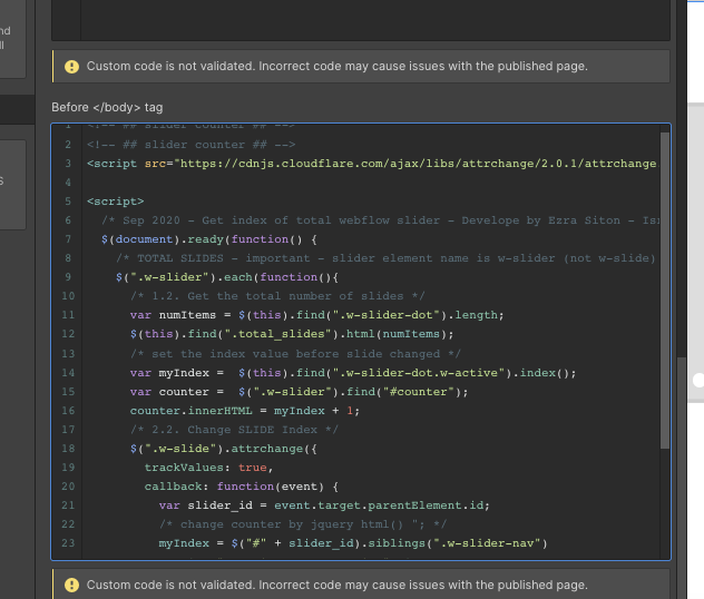/* Sep 2020 - Get index of total webflow slider - Develope by Ezra Siton - Israel */