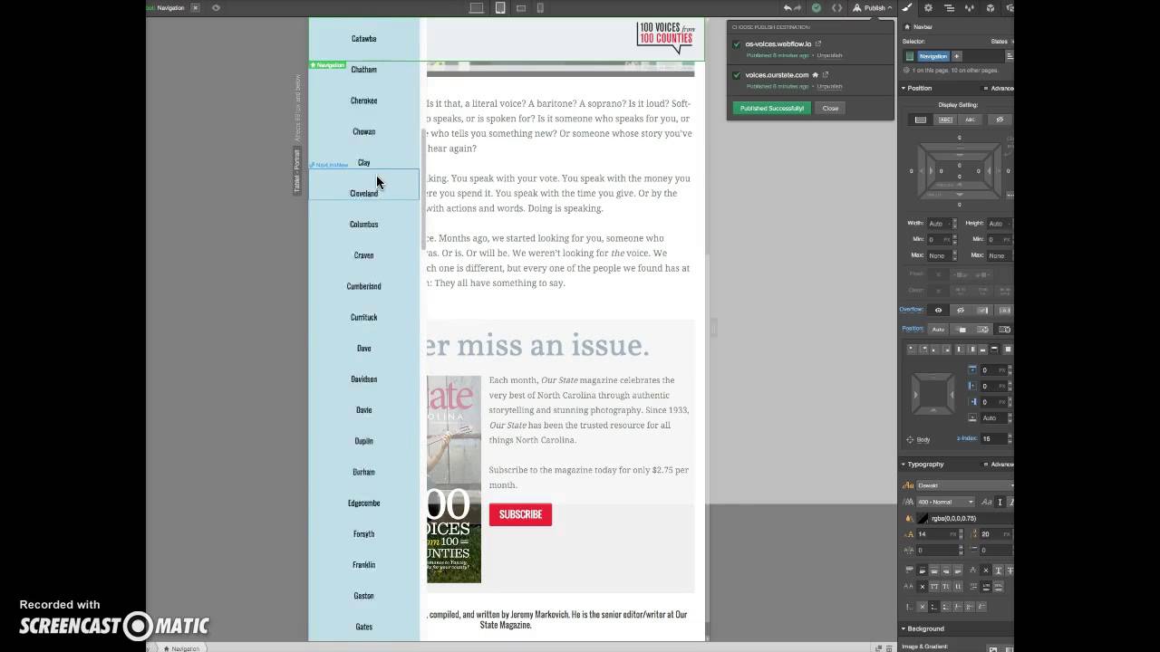 Hi @angierosie, thanks for the update. Could you make a slight change to the style of the NavMenuHolder at Tablet Portrait view, to set the values as in the screenshot below, for the fixed positioning and offsets: