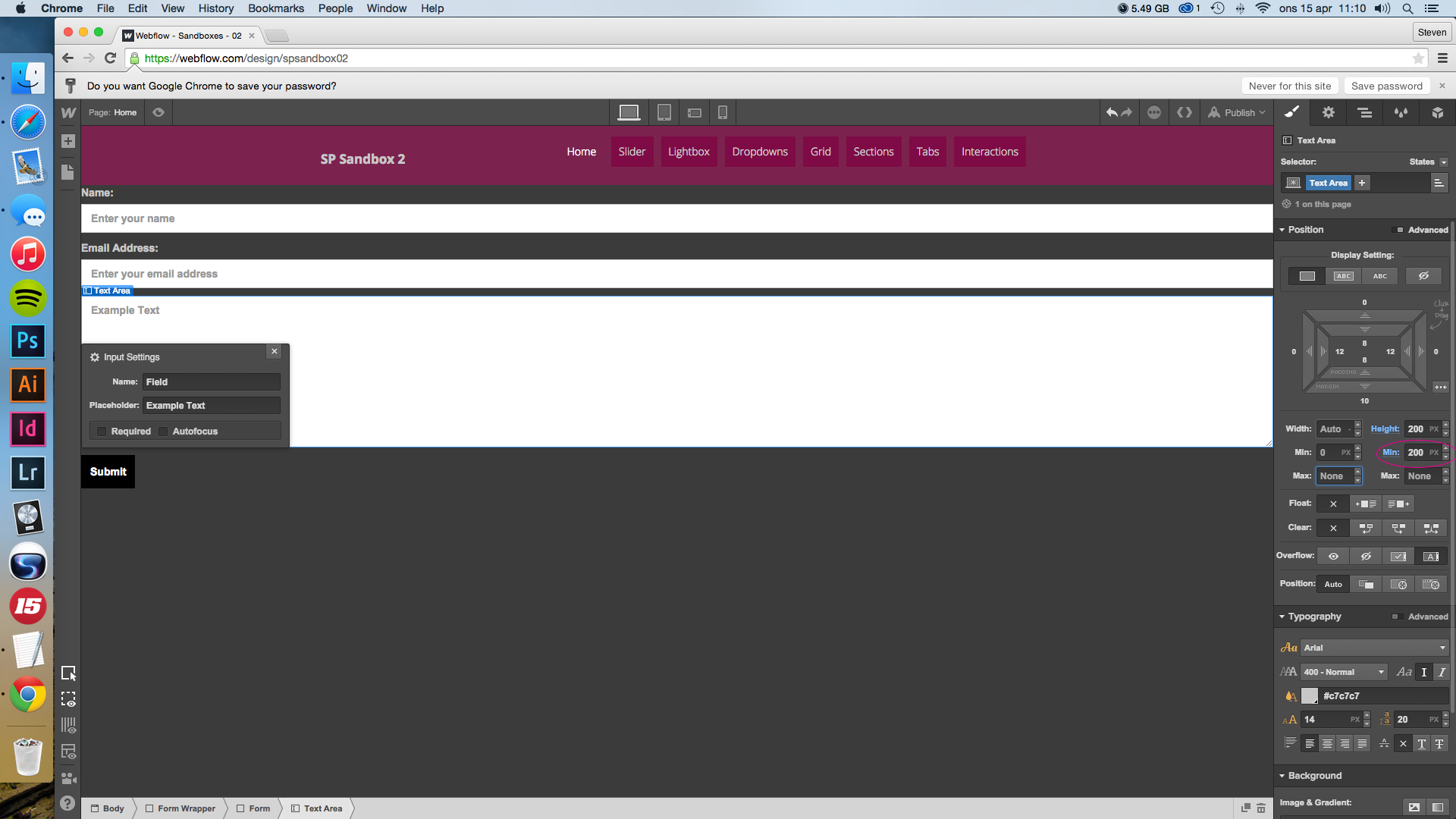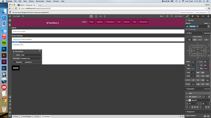 In chrome on mac nothing changes when i specify height in setting panel for text area in form ![]()