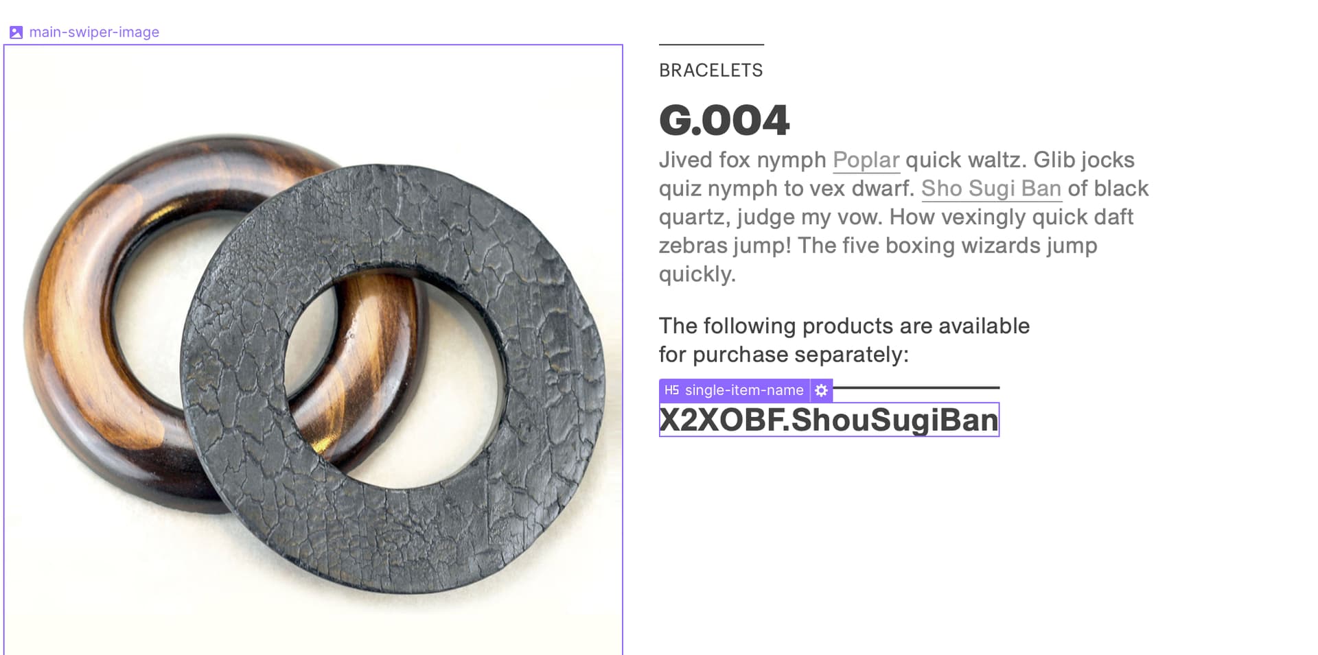 They will add more products (with links in the description) and more blog posts over time, but those will follow the same CMS and tab class pattern.