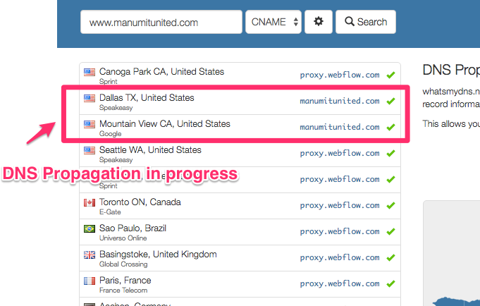 Well the first thing to check, is that the cname record on the domain www.manumitunited.com is not yet set to proxy.webflow.com.