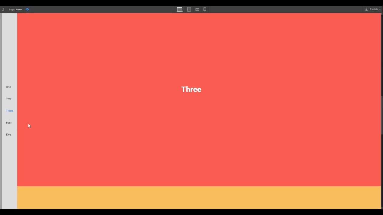 I quickly created a cloneable template of a vertical menu with dots as the menu links. The dots are then linked to different sections of the page: Vertical Menu with Section Selection - Webflow