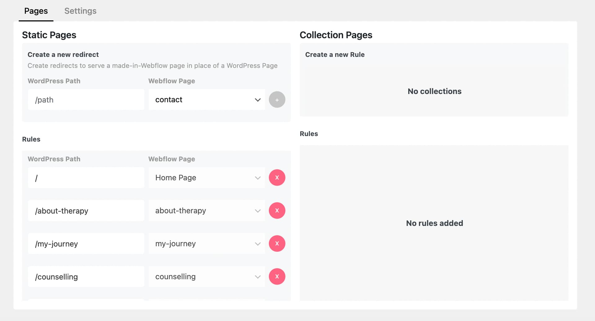 I’m having difficulty getting the Webflow Pages plugin to redirect existing WordPress pages to newly created Webflow static pages. I may be missing something very obvious, so your help is much appreciated!