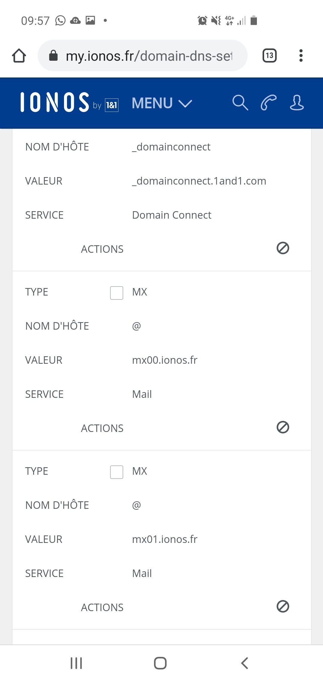 P.S Normalement il y une icône poubelle en face de CNAME autodisvover mais je le touche pas!